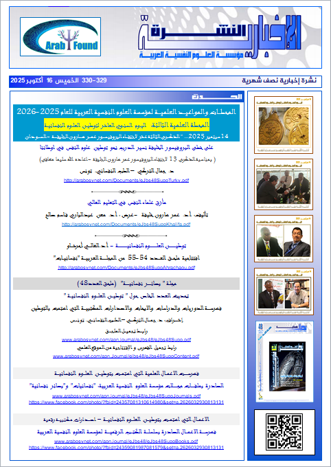 " النشرة الإخبارية " لمؤسسة العلوم النفسية العربية العدد 329-330 الخميس 16 أكتوبر 2025 |