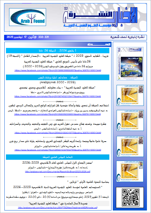 " النشرة الإخبارية " لمؤسسة العلوم النفسية العربية العدد 331-332 الإثنين 17 نوفمبر 2025 |