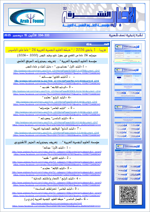 " النشرة الإخبارية " لمؤسسة العلوم النفسية العربية العدد 333-334 الإثنين 15 ديسمبر 2025 |