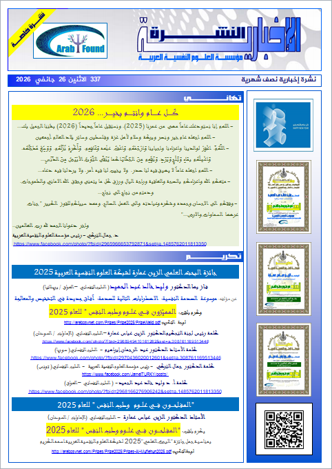 " النشرة الإخبارية " لمؤسسة العلوم النفسية العربية العدد 337 الاثنين 26 جانفي 2026 |